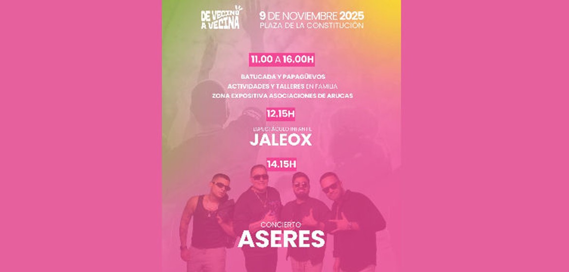 La Plaza de la Constitución de Arucas y la Calle León y Castillo se llenarán de vida el próximo domingo 9 de noviembre, con motivo de la celebración del Día del Vecino y la Vecina, una cita organizada por la Concejalía de Participación Ciudadana del Ayuntamiento de Arucas.