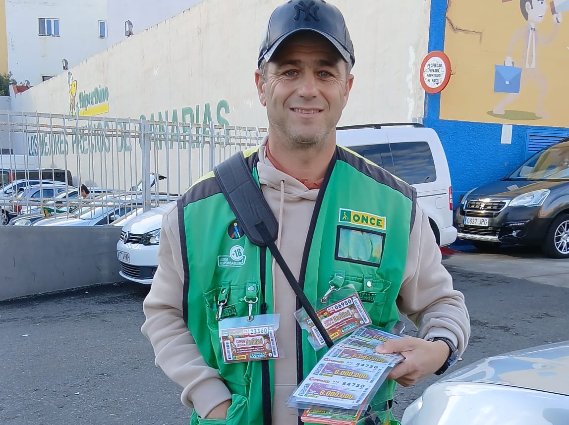 Enrique David Sosa, agente vendedor de la ONCE desde enero de 2010, fue el responsable de repartir la suerte con 1 cupón del premio mayor de 500.000 euros y 16 cupones de 35.000 euros cada uno, en sus puntos de venta en HiperDino de Tamaraceite y en la Gasolinera de Los Alisios, ambos en Las Palmas de Gran Canaria.