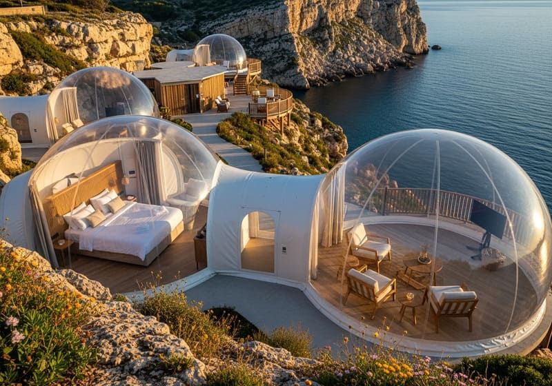 Los hoteles burbuja combinan lujo y diseño con entornos naturales impresionantes. Algunas burbujas están ubicadas cerca de playas, otras en zonas volcánicas o en entornos de montaña, permitiendo disfrutar de vistas panorámicas excepcionales. Esta experiencia transforma la manera de recibir en Canarias, ofreciendo un equilibrio entre aventura y confort que ningún hotel tradicional puede igualar.