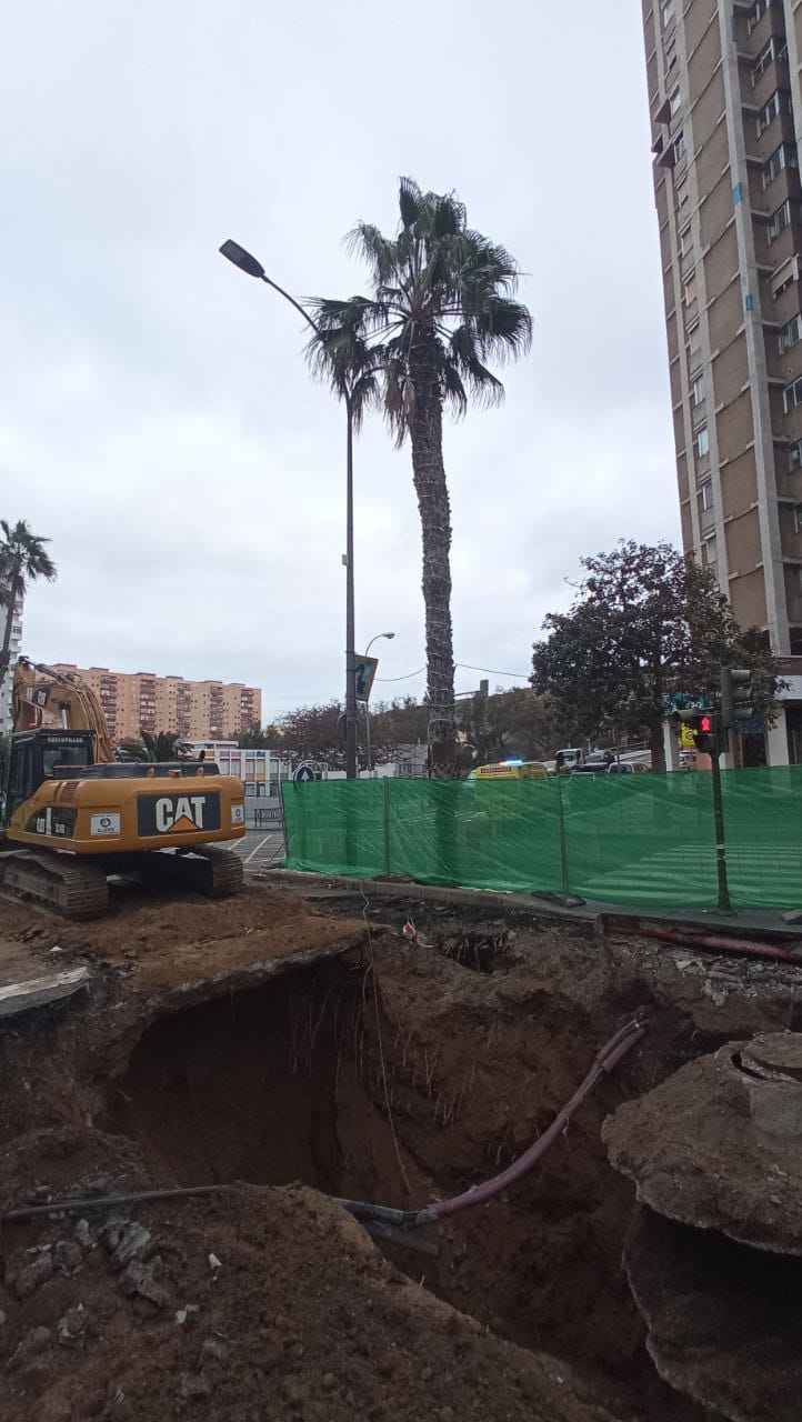 Además, al abrir la zanja para llegar al punto exacto de la avería, también se han visto afectadas dos palmeras. Parques y Jardines determinará el lunes qué hacer con ambos ejemplares para intentar salvarlos.