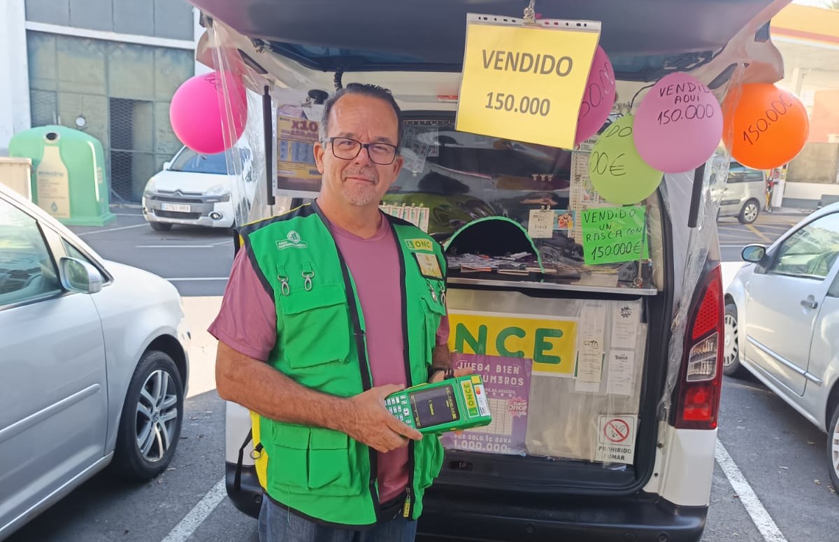 Sebastián Hernández Martín es el vendedor de la ONCE que ha dado estos 150.000 euros en Santa Cruz de Tenerife, desde su punto de venta situado en la Avenida Isora, junto al Alteza (Guia de Isora).