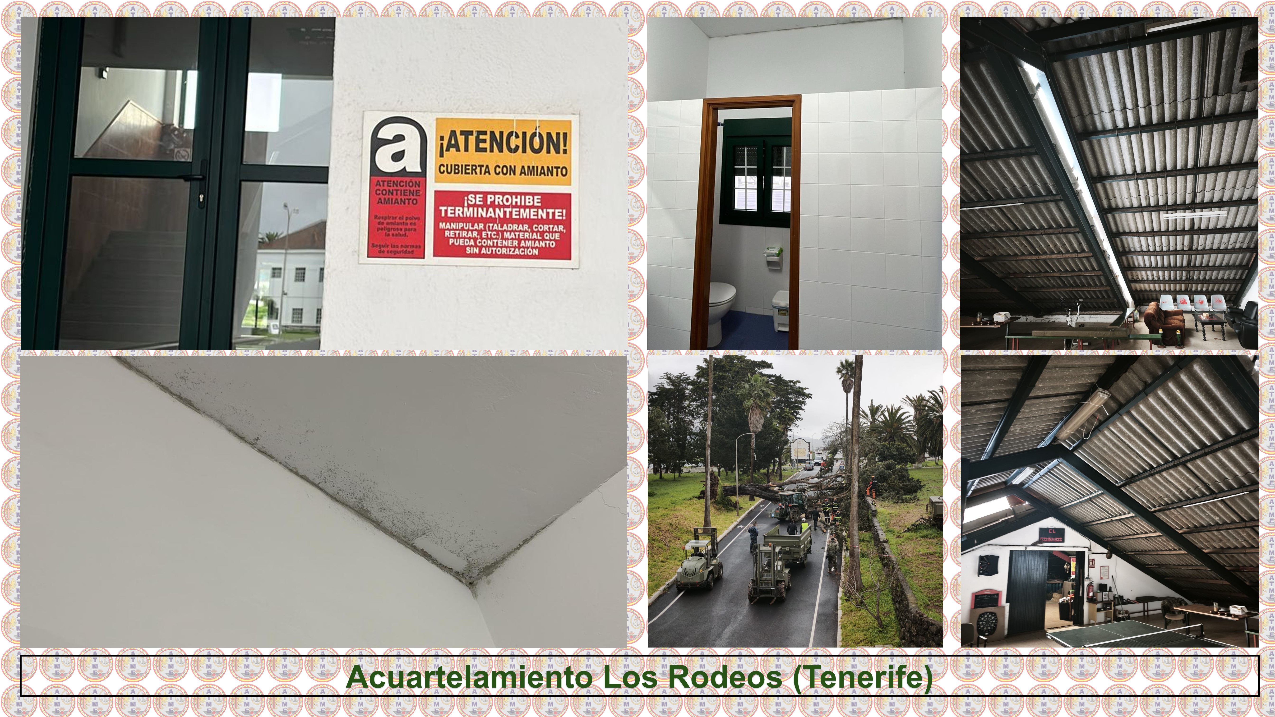 Asimismo, la asociación muestra su preocupación por la presencia de cubiertas de amianto en alojamientos, zonas de vida y almacenes del acuartelamiento, algunas de ellas afectadas por humedades que podrían acelerar su degradación. ATME solicita una relación completa de los edificios que contienen este material, una evaluación actualizada de su estado y los protocolos de seguridad aplicados al personal que utiliza estas instalaciones, además de información sobre posibles planes de retirada, sustitución o encapsulado.
