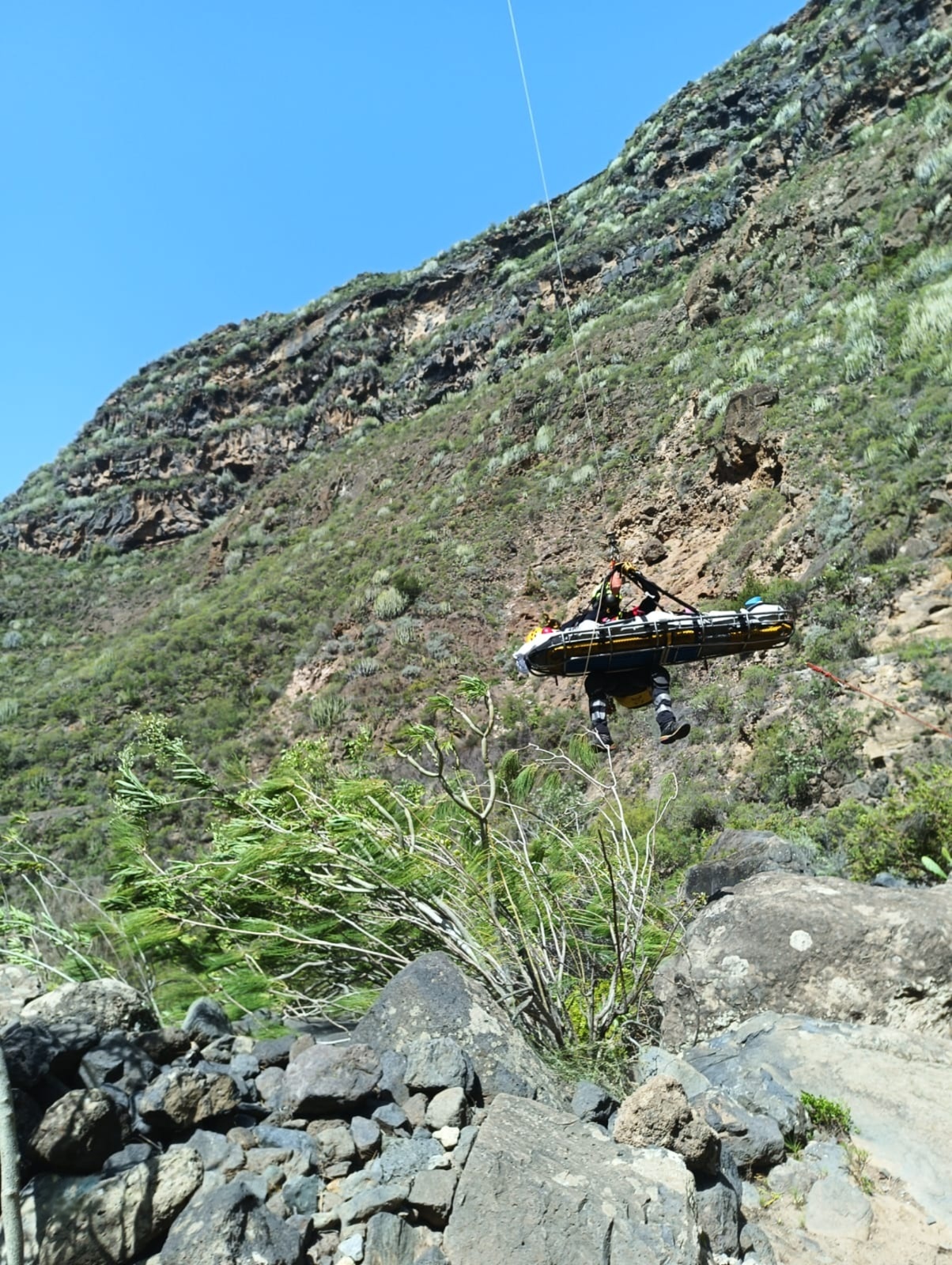 Asimismo, efectivos del parque de Guía de Isora fueron solicitados, sobre las 11:20 horas, para un rescate de montaña en el barranco del Infierno. Una mujer sufrió una caída y estaba siendo atendida por personal del GES, por lo que colaboraron con ellos en la inmovilización de la afectada y la transportaron hasta el punto de evacuación del helicóptero ayudando en las labores de izado. Intervinieron bomberos voluntarios de Adeje, la Policía Local y el Servicio de Urgencias Canario.