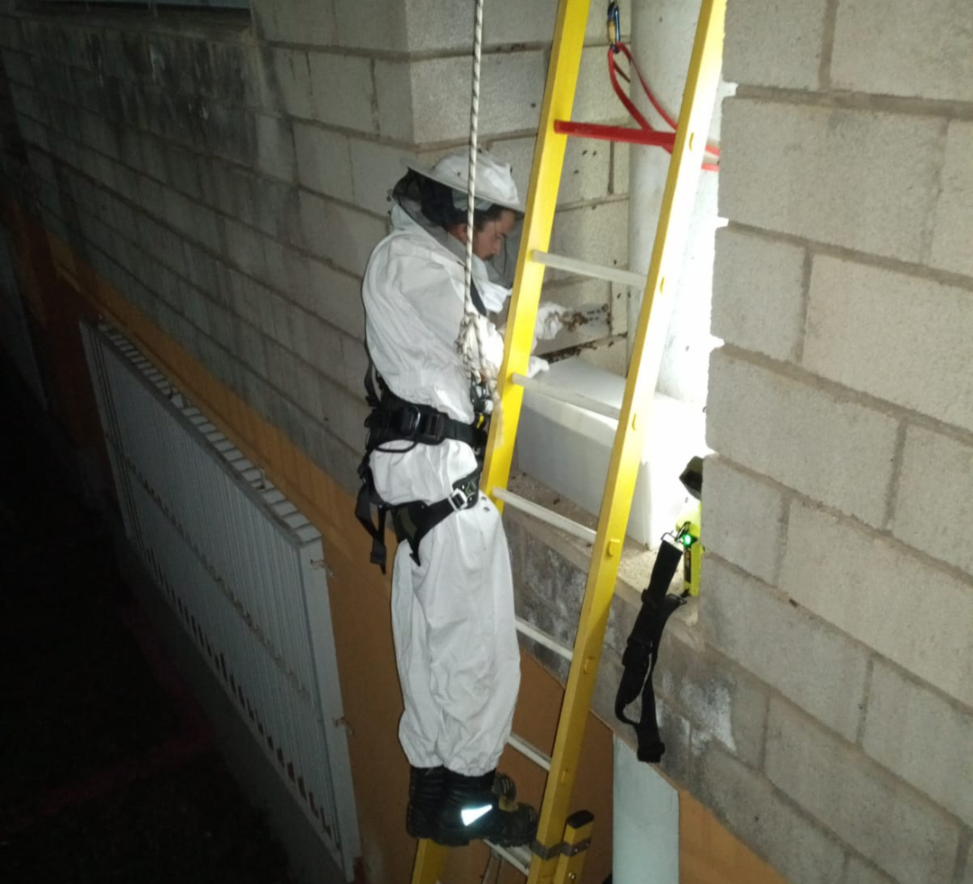 Por otro lado, efectivos del parque de San Miguel de Abona fueron requeridos, sobre las 16:00 horas, para intervenir en los daños de una fachada en Adeje. Llegados al lugar, hicieron uso de la autoescalera para retirar las piedras sueltas y realizar el saneamiento de fachada. Intervino la Policía Local.